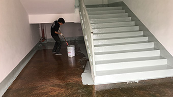 | 樓梯耐磨環(huán)氧樹脂地坪 施工過程中的部分圖片(二) | ||